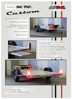 Alutrail sigue con las presentaciones, esta vez les mostramos una variante del modelo Big Trp, esta versión llamada Custom tiene como particularidad principal una rampa oculta debajo del chasis de 2 MTS de largo para poder subir motos con poco despeje del suelo, los compradores de este modelo llevaran en el 2 motocicletas Harley Dividson.